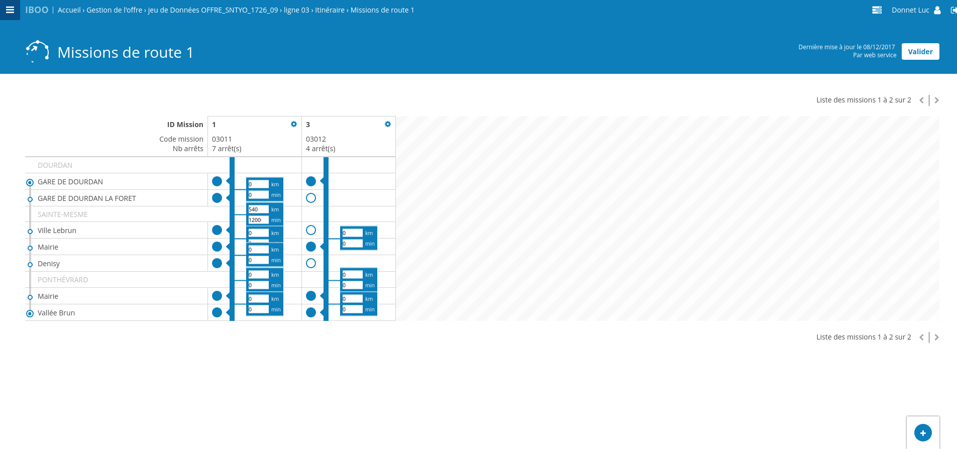 Le but de cette feature est d'ajouter la possibilité de saisir un temps de parcours et un kilométrage entre 2 arrêts d'une mission. Ces valeurs pourront ensuite être utilisé pour calculer automatiquement des horaires de passage par exemple.