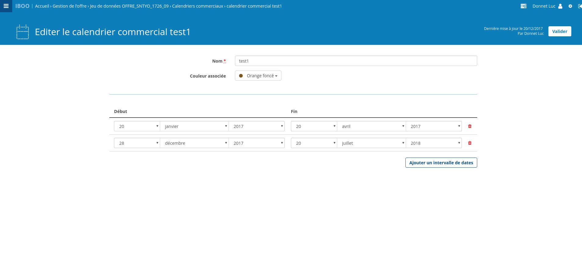 Ajoute une vue détaillée des calendriers commerciaux sur l'éditeur d'horaires.