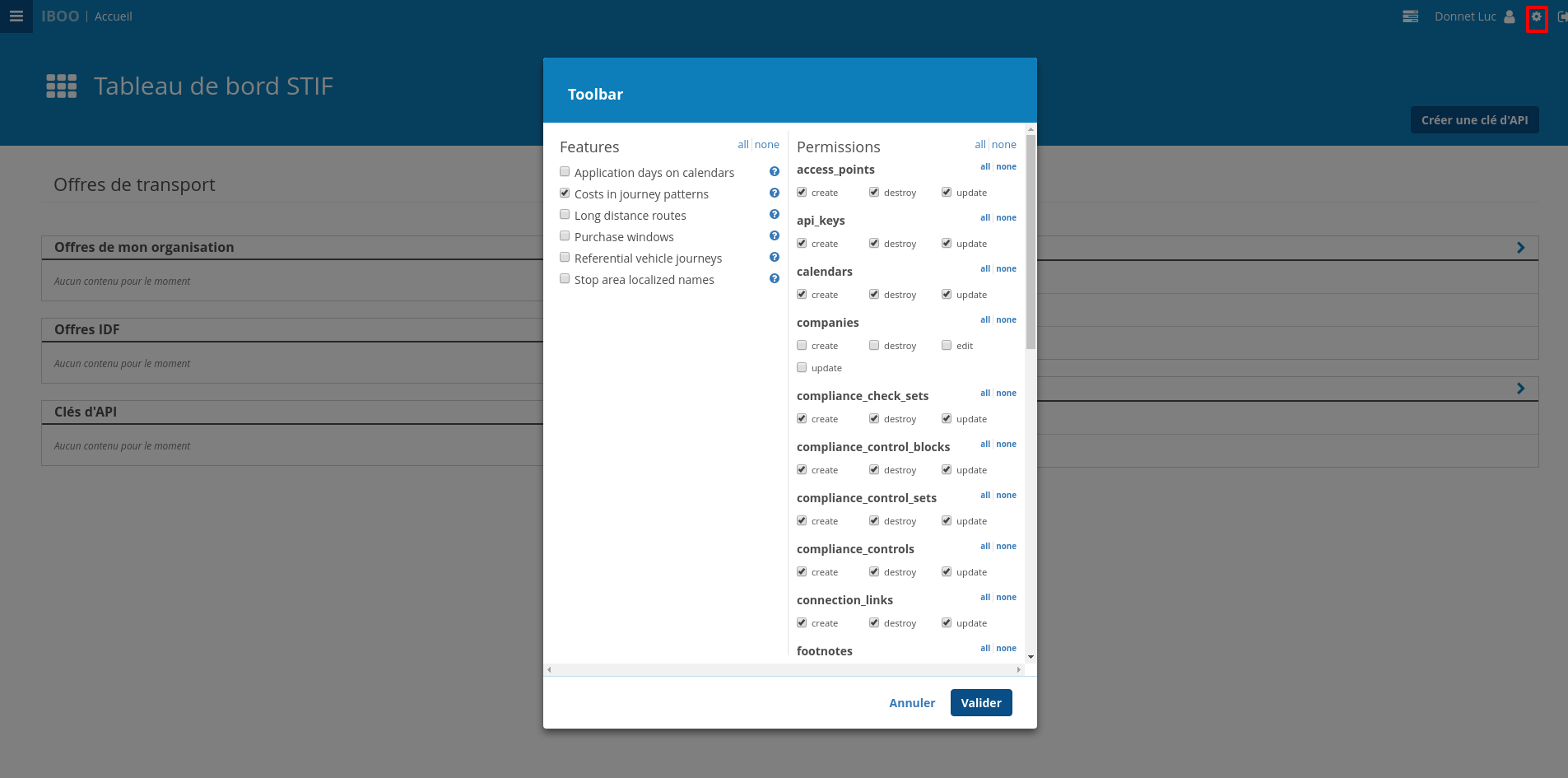 Pour avoir la barre de raccourcis qui permet d'activer/désactiver features et permissions: