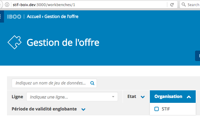 Limite les organisations dans la liste des filtres sur Workbenches#show (http://stif-boiv.dev:3000/workbenches/1). Maintenant, que les organisations associées au current Workgroup sont affichées.